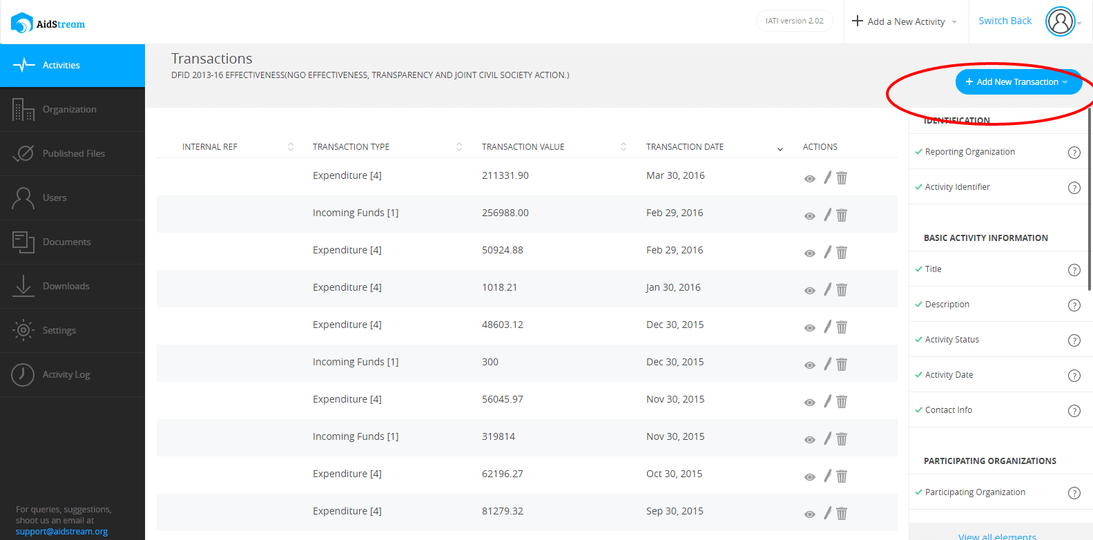 Adding financial information to your activity in AidStream