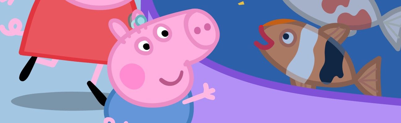 In the episode Hearing Test, Peppa’s family learns that George has moderate hearing loss in one ear during a routine doctor’s visit, and he is fitted with a hearing aid.